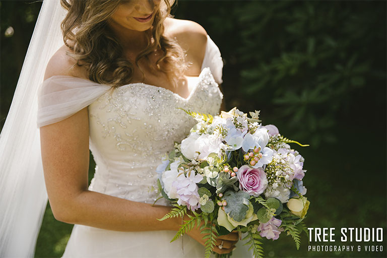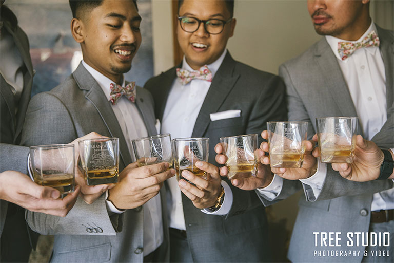Flowers: Desflora (bouquets/boutonnieres, and beam/reception piece)